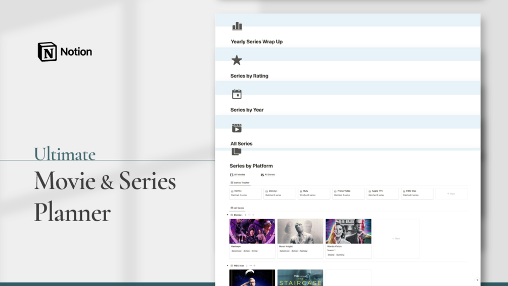Introducing newly launched Digital Movie & TV Series Tracker the NOTION TEMPLATE version to collect your favorite movies and series!